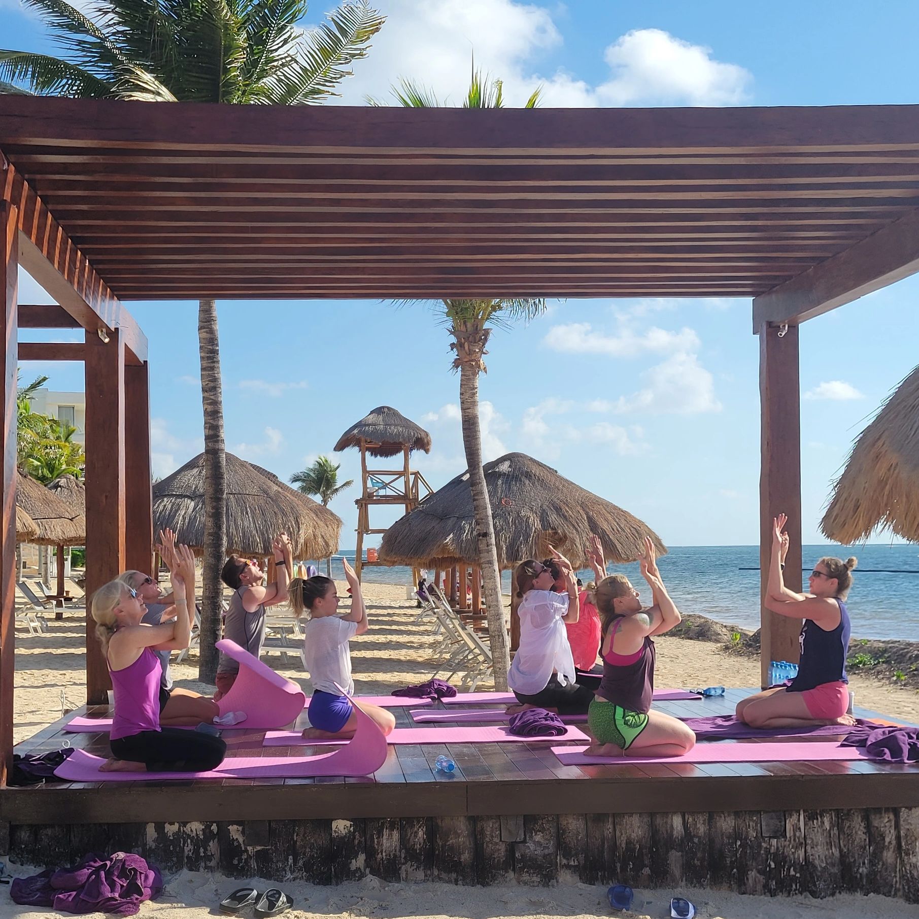 Throughout the year, she also leads classes on white, sandy beaches at All-inclusive AMR Resorts in the Caribbean and Mexico.